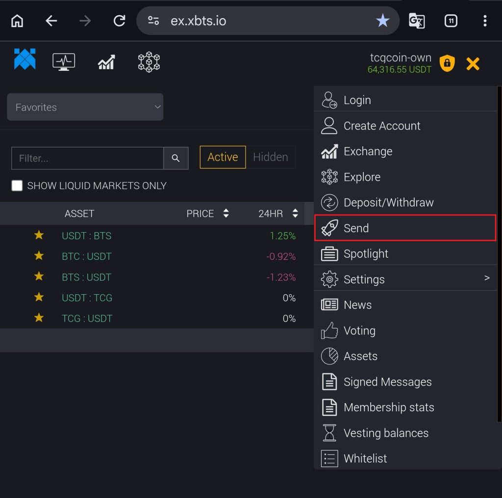 XBTS 지갑간 코인전송