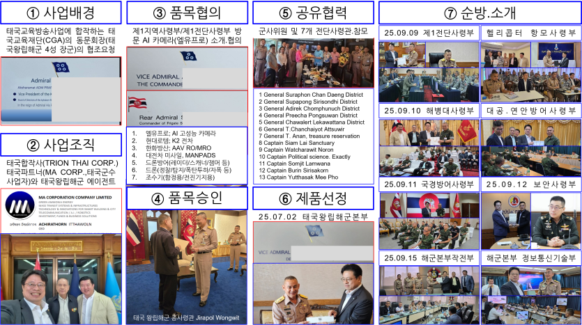 이에 태국의 군수기업인 MA Corporation Co., Ltd. 가 태국왕립해군에 한국방산품을 수입하여 태국왕립해군에 공급하며,